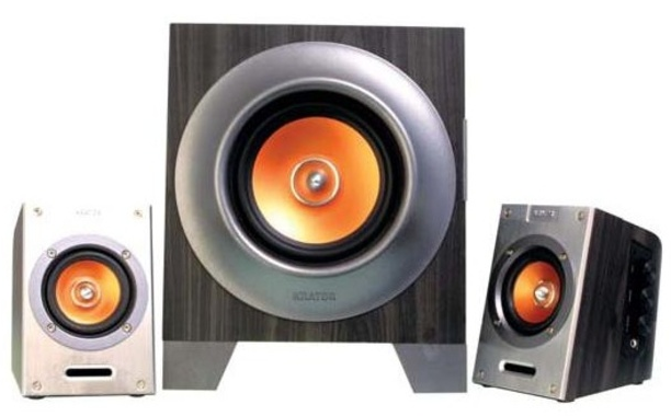 3-piece wood enclosure speaker system with long-throw woofer;30W RMS power output;reinforced bass performance; Bullet-head design on 5.25 inch woofer and 2.5inch satellite drivers; Extra 3.5mm stereo line-in for connecting to an iPod or MP3 player;Extremely low-noise Hi-Fi circuit design;Adjustable Volume, Bass and Treble control.