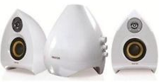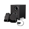 Stylish and affordable 2.1 speaker system;Quality audio in a compact size satellite speakers (2.5W RMS per channel);Powerful 4W RMS subwoofer;Wired remote control.